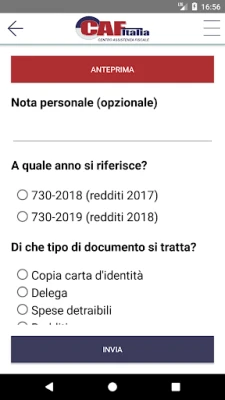Voor geregistreerde cliënten van CAF Italia, met de nodige inloggegevens, biedt de app een uitgebreide, persoonlijke omgeving. U kunt moeiteloos een digitale kopie van uw 730- of ISE-aangiften, inclusief alle bijbehorende ontvangstbewijzen en attestaties, voor zowel het huidige als het voorgaande jaar raadplegen en opslaan. Het voorbereiden van uw jaarlijkse 730-aangifte wordt aanzienlijk vereenvoudigd: verstuur benodigde documenten in PDF-formaat, als afbeelding, of maak direct een foto met de handige camerafunctie binnen de applicatie, zowel voor dit als voor het volgende fiscale jaar.