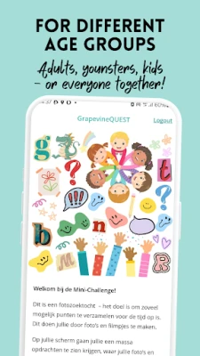grapevineQUEST transformeert elk evenement in een boeiend avontuur. Geïnspireerd door de spanning van schattenjachten, biedt dit dynamische platform van grapevine een unieke manier om gemeenschappen – van scholen en bedrijven tot sportverenigingen – actief te betrekken. Of het nu gaat om teambuilding, een educatieve activiteit of gewoonweg plezier, grapevineQUEST creëert onvergetelijke momenten voor zowel kinderen als volwassenen door middel van interactieve foto-uitdagingen, waardoor iedereen op een leuke manier wordt geactiveerd.