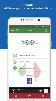 Ontdek de essentie van Italiaanse cultuur en gemeenschap, rechtstreeks op uw mobiele apparaat. De officiële Rete Italia Radio Network-applicatie vormt de brug voor Italiaanstaligen in zowel stedelijke als regionale gebieden, en brengt u dichter bij uw erfgoed en de wereld om u heen. Vanuit het hart van de gemeenschap biedt Rete Italia een unieke mix die de ziel van Italië levend houdt, waar u ook bent.